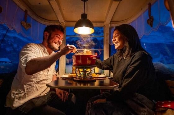 Verwöhnen Sie sich in der nostalgischen Atmosphäre einer alten Gondel mit einem traditionellen Käse-Fondue und stossen Sie mit einer Flasche passendem Weisswein auf die Zweisamkeit an. Abgerundet wird dieses Geschmackserlebnis mit einem feinen Dessert.