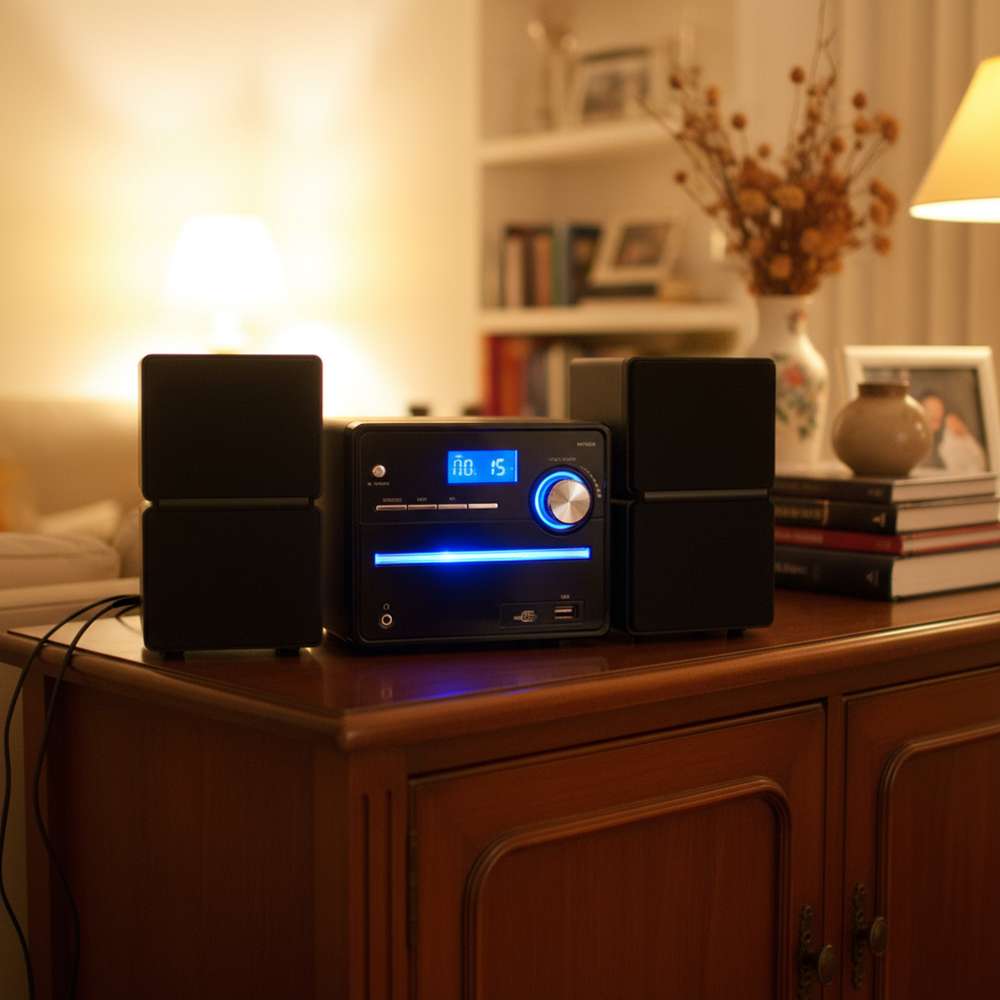 Tauchen Sie ein in die Welt des perfekten Klangs! Unsere Mini-Stereoanlage vereint modernes Design, vielseitige Funktionen und beeindruckende Klangqualität in einem kompakten Format. Ob für das Wohnzimmer, Schlafzimmer oder Büro – dieses Allround-Talent sorgt überall für stimmungsvollen Musikgenuss.